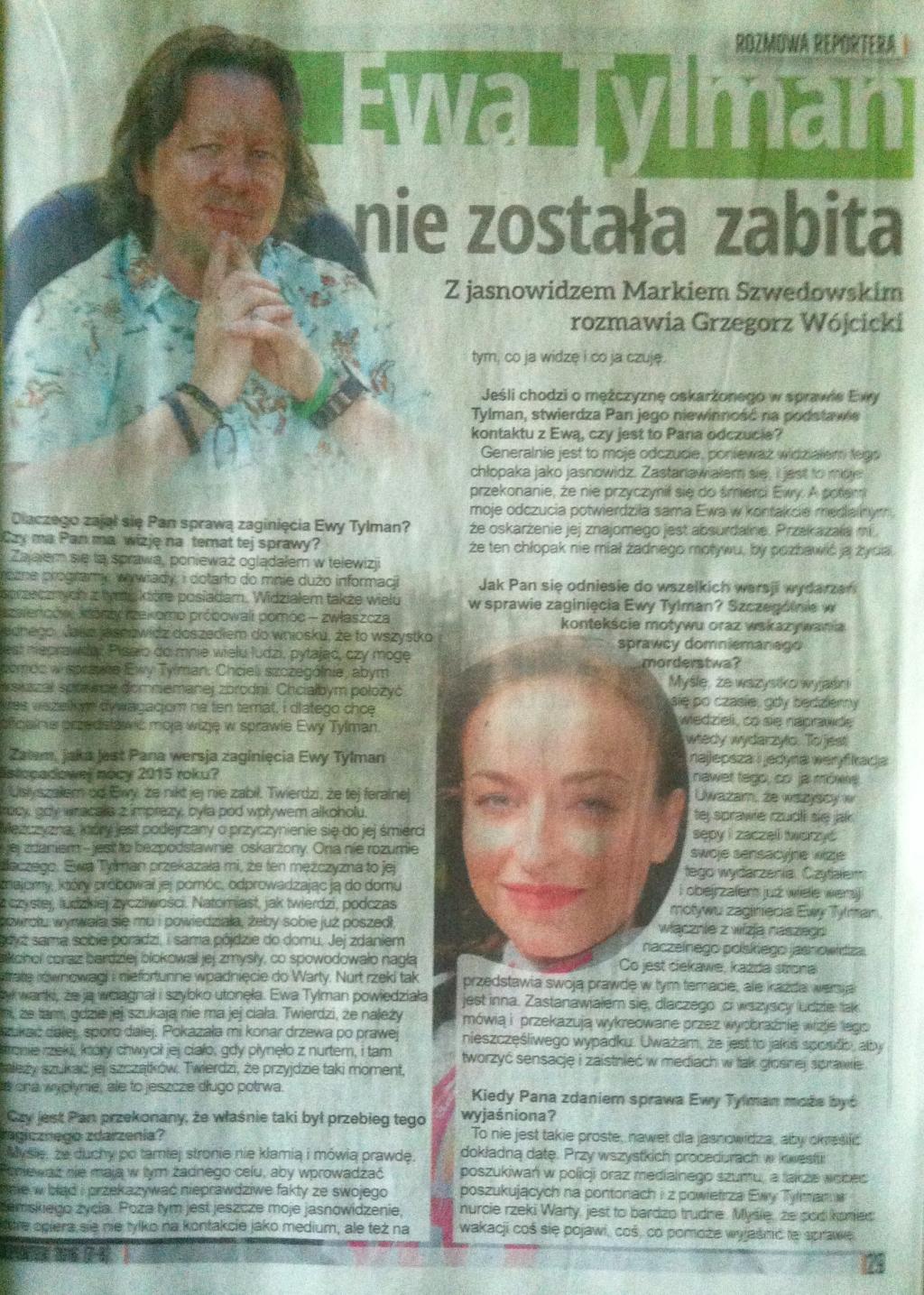 Rozmowa z Markiem Szwedowskim ukazała się w najnowszym wydaniu dwumiesięcznika Reporter. Ewa Tylman miala mu przekazać, że jej ciało jest w rzece Warta. A znalazła się tam przypadkowo, bo zbyt dużo wypiła.