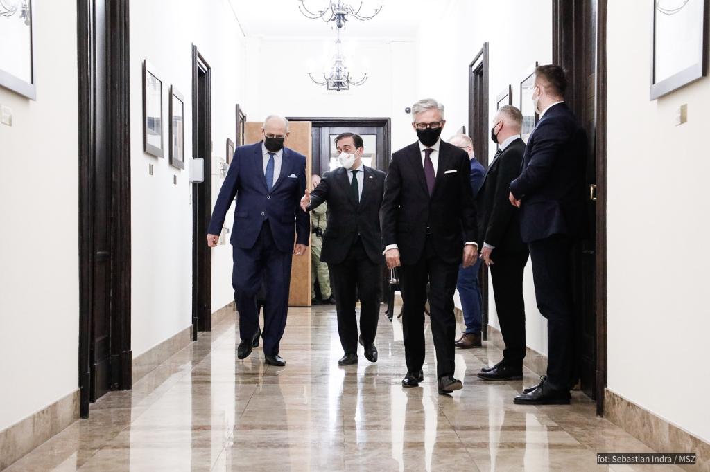 Spotkanie ministra Zbigniewa Raua z ministrem spraw zagranicznych Hiszpanii José Manuelem Albaresem Bueno. Głównym tematem rozmów ministrów była agresja Rosji na Ukrainę