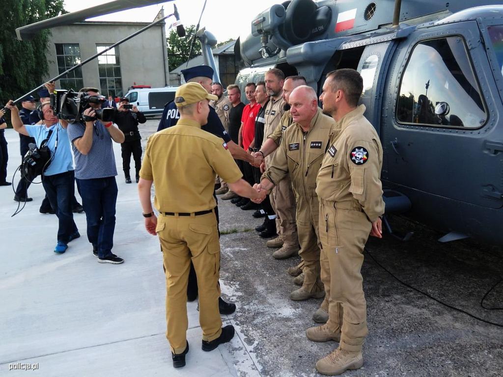 - Jestem zbudowany Waszym działaniem. Każdego dnia, każdej godziny śledziliśmy Wasze zmagania. Jestem pełen podziwu dla Waszej pracy. To pierwsza taka wspólna misja. Napisaliśmy pewną nową historię, jeśli chodzi o współpracę polskiej Policji i Państwowej Straży Pożarnej. To była niezwykła współpraca zakończona sukcesem. Zastaliście tam sytuację bardzo trudną a zostawiliście sytuację pożarowo ogarniętą. Bardzo Wam za to dziękuję - dodał Komendant Główny Państwowej Straży Pożarnej nadbryg. Andrzej Bartkowiak.