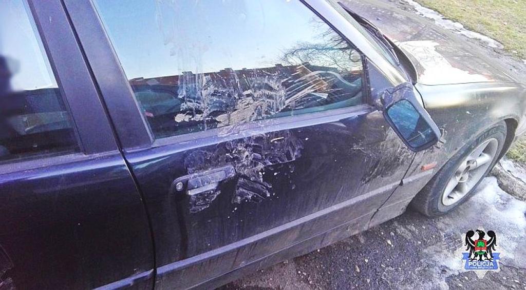 Mężczyzna kopiąc nogami w auto uszkodził karoserię i lusterko, po czym oddalił się. Policjanci kilkanaście minut po informacji o zdarzeniu zatrzymali 27-latka. Za tego typu czyn może mu teraz grozić kara pozbawienia wolności do 5 lat.