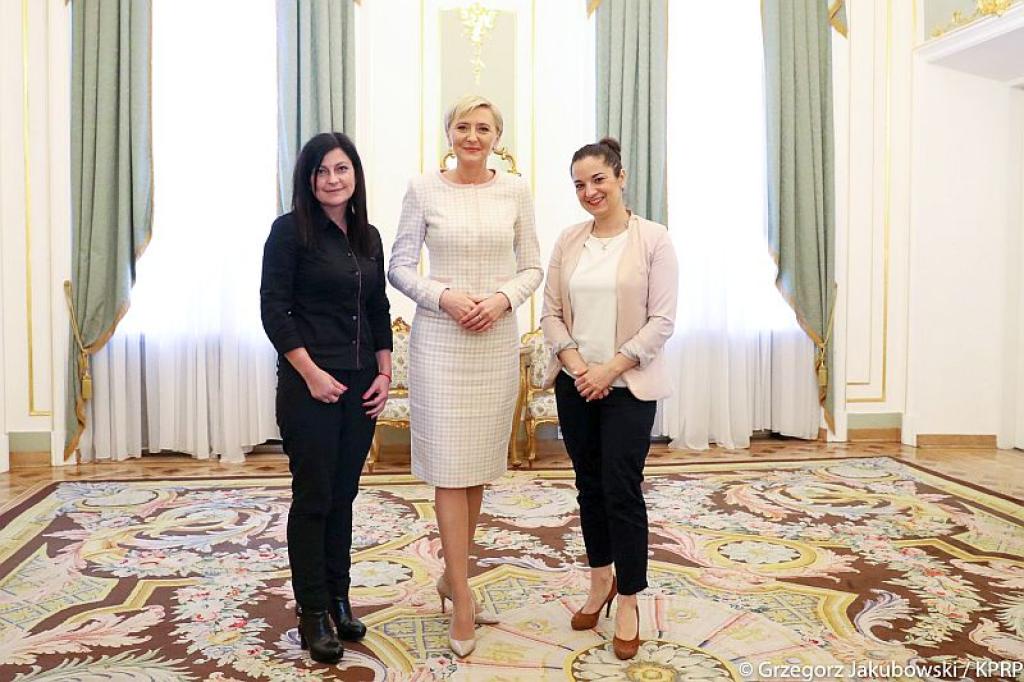 Agata Kornhauser-Duda spotkała się z przedstawicielkami Stowarzyszenia Niebieski Motyl. Organizacja wspiera kobiety dotknięte nowotworem strefy intymnej, w szczególności rakiem jajnika.