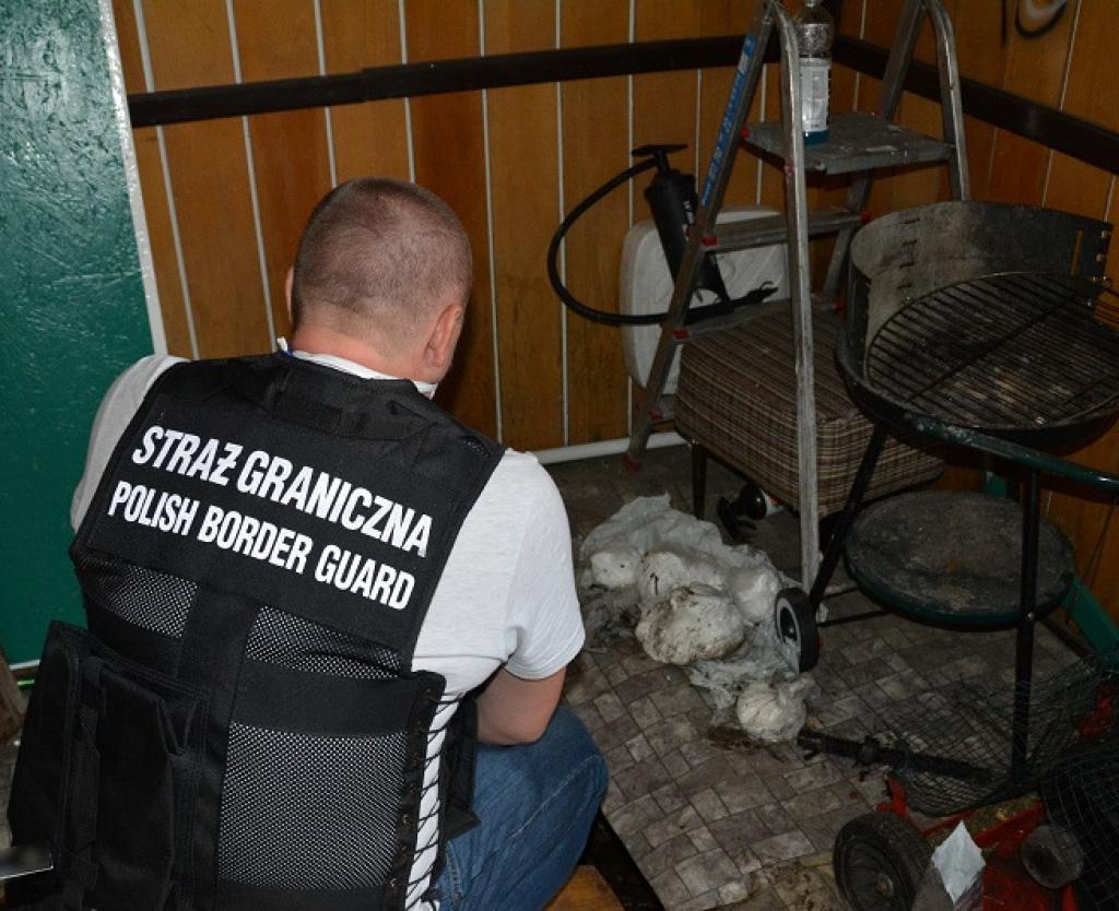 Na widok funkcjonariuszy SG obecny na miejscu 40-latek wyprodukowane narkotyki spakował w reklamówkę, a sam schował się pod podłogę. Okazało się, że działkowicz zamiast uprawiać warzywa zajął się produkcją narkotyków. Na miejscu zabezpieczono prawie 3,8 kg amfetaminy oraz ponad 2 kg marihuany. W pojeździe zaparkowanym przed posesją również były marihuana, amfetamina i tabletki ecstasy. Ponadto zabezpieczono opakowania po płynnej amfetaminie i kwasie siarkowym, kofeinę oraz sprzęt służący do produkcji środków odurzających.